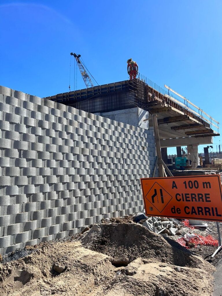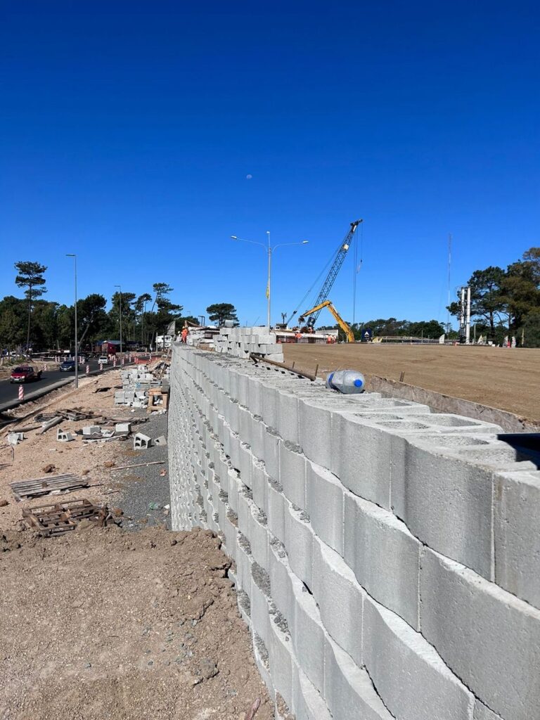 En este caso, se utilizaron geogrillas Fortrac®️ de PVA (polivinil alcohol) y bloques Terrae®️ para el revestimiento y fachada del muro.