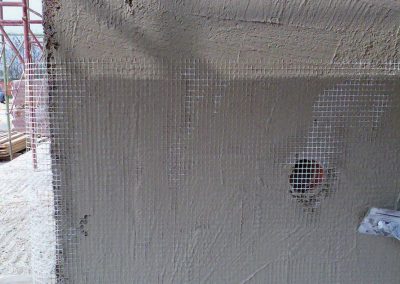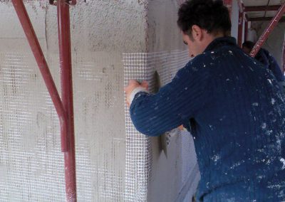 2) Aplicar una capa fina de revoque y posicionar la malla presionándola levemente o si los paños son muy grandes fijarla con clavos o similar.
