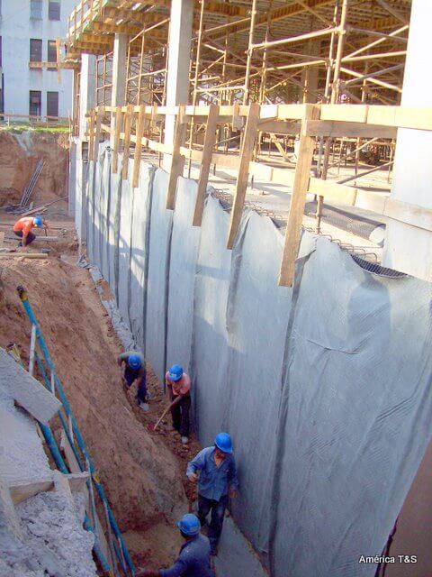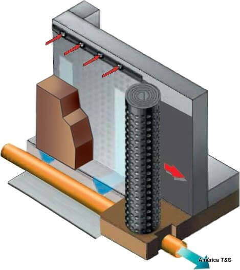 En presencia de agua detrás de muros de contención, el uso de geodrenes elimina la presión hidroéstatica sobre los mismos. Esto redunda no sólo en una reducción del empuje sobre los muros sino también que colabora en forma muy importante con la impermeabilización.